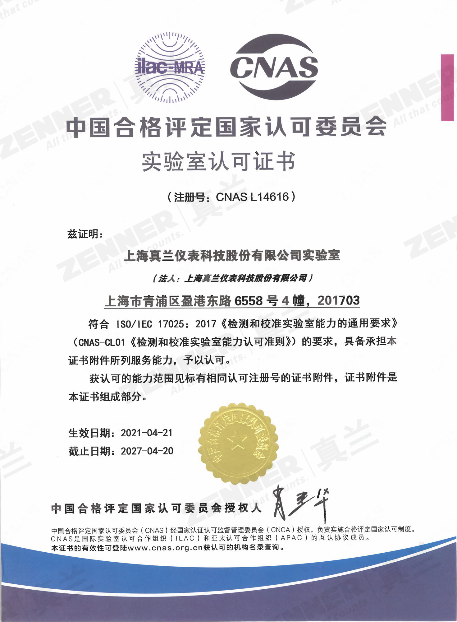 上海真蘭儀表科技股份有限公司實驗室獲CNAS認(rèn)證